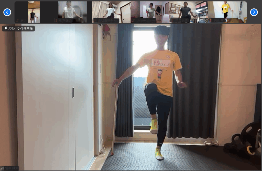 今回は、ウォームアップから筋膜リリース、下肢のトレーニングと認知症予防、バランストレーニング、格闘技系、つぼと体験して頂きました。